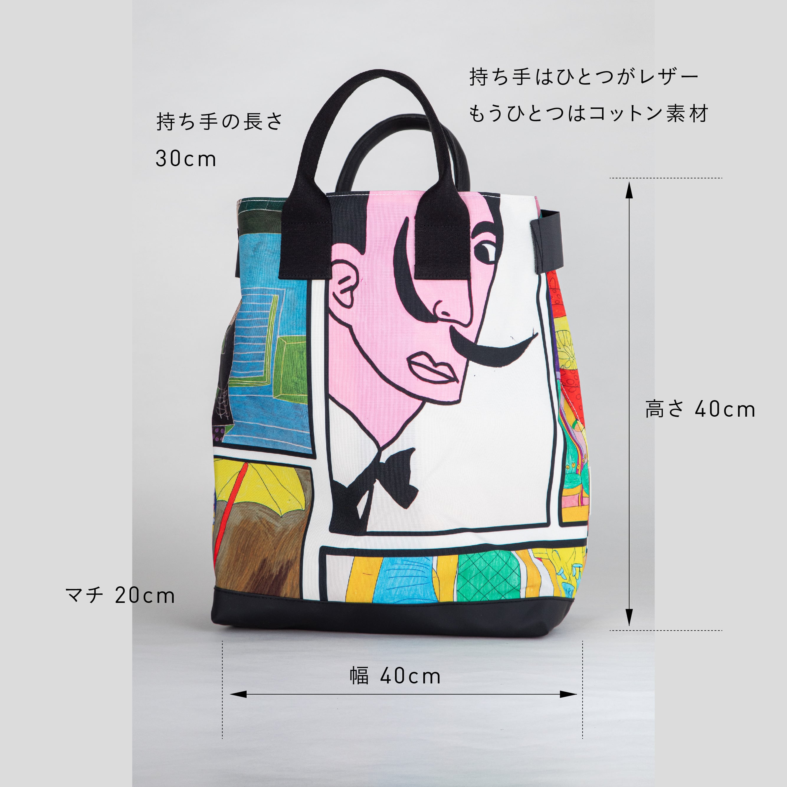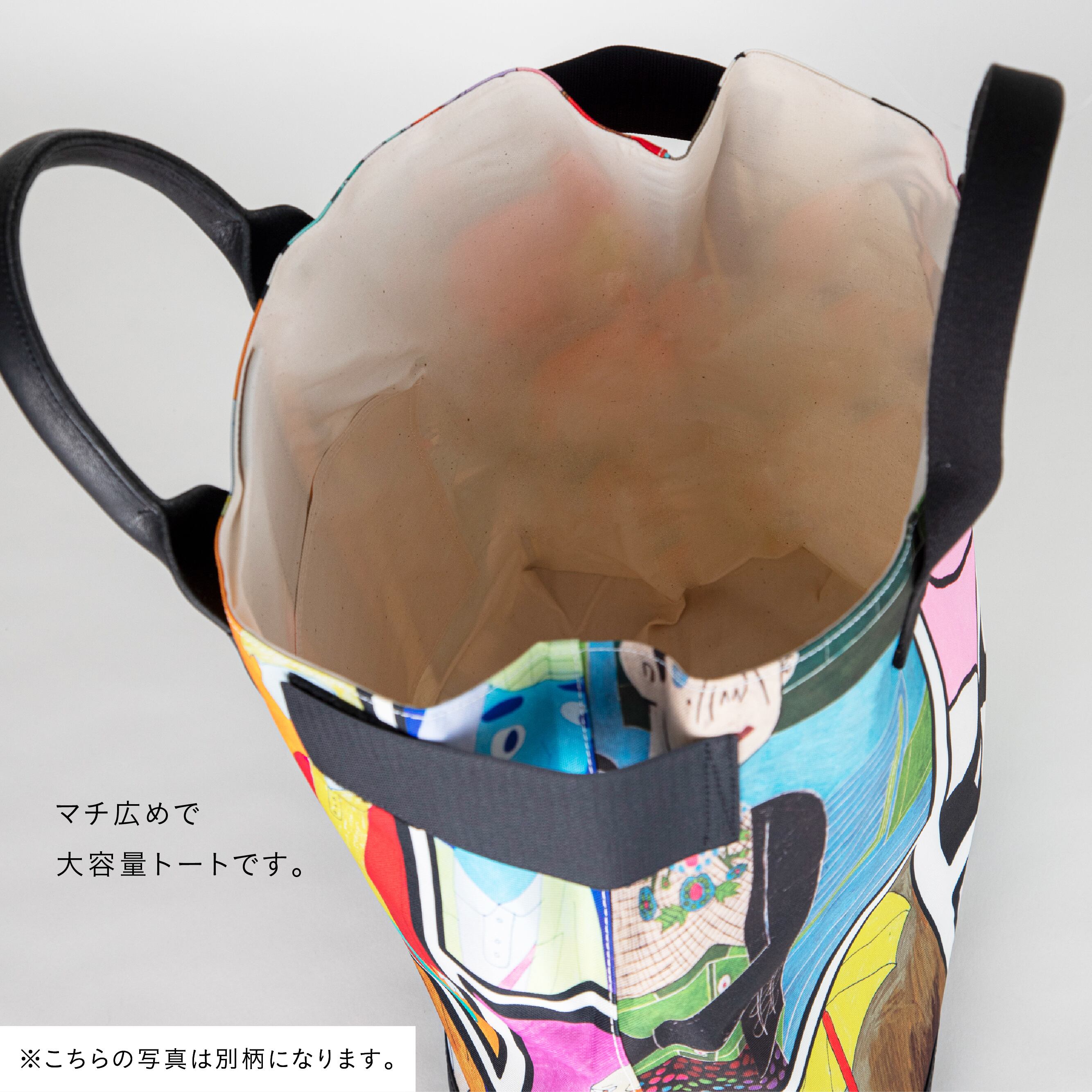 アートを全面にプリントしたトートバッグです。
