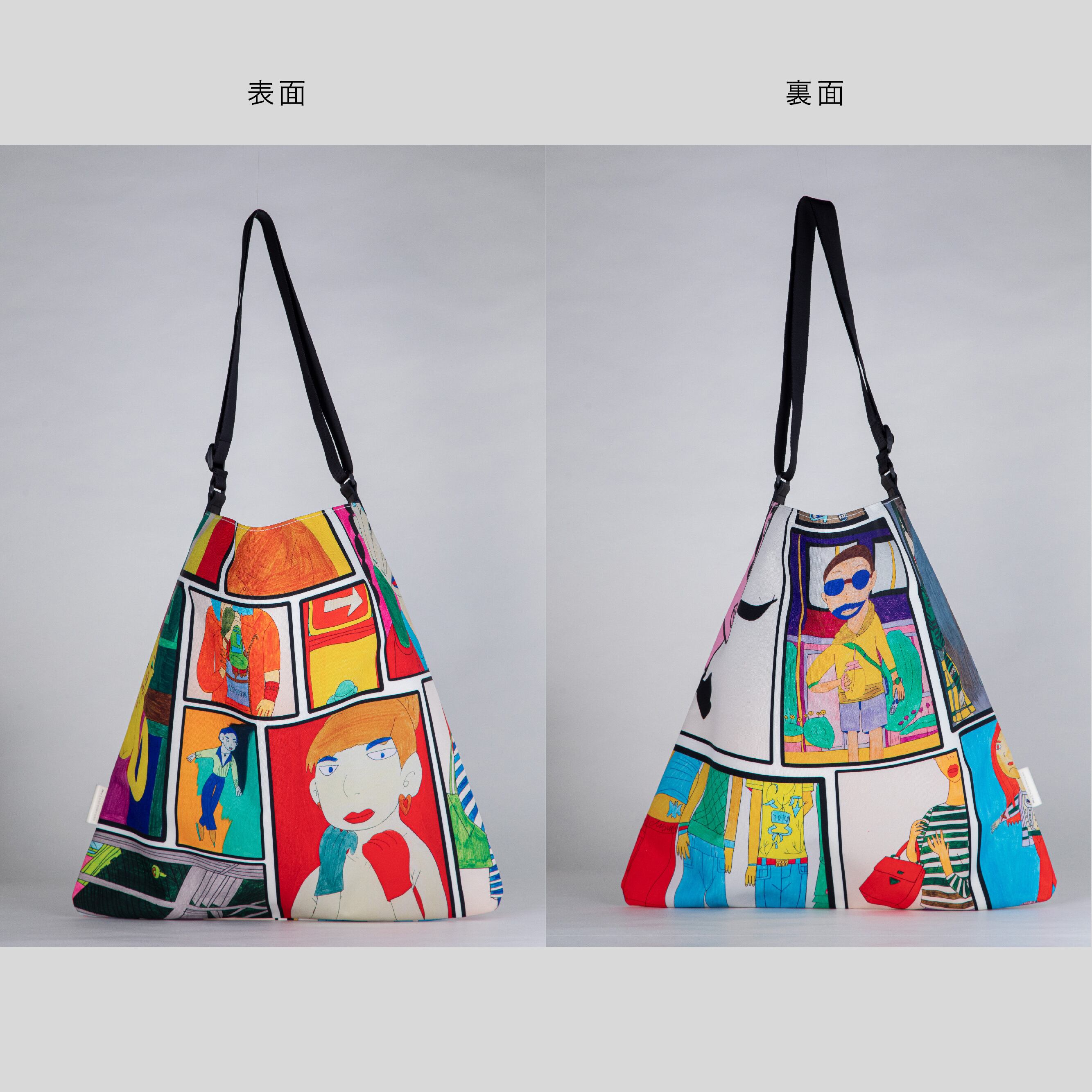 滋賀県にある福祉施設「やまなみ工房」で生まれたアート作品を全面にプリントしています。